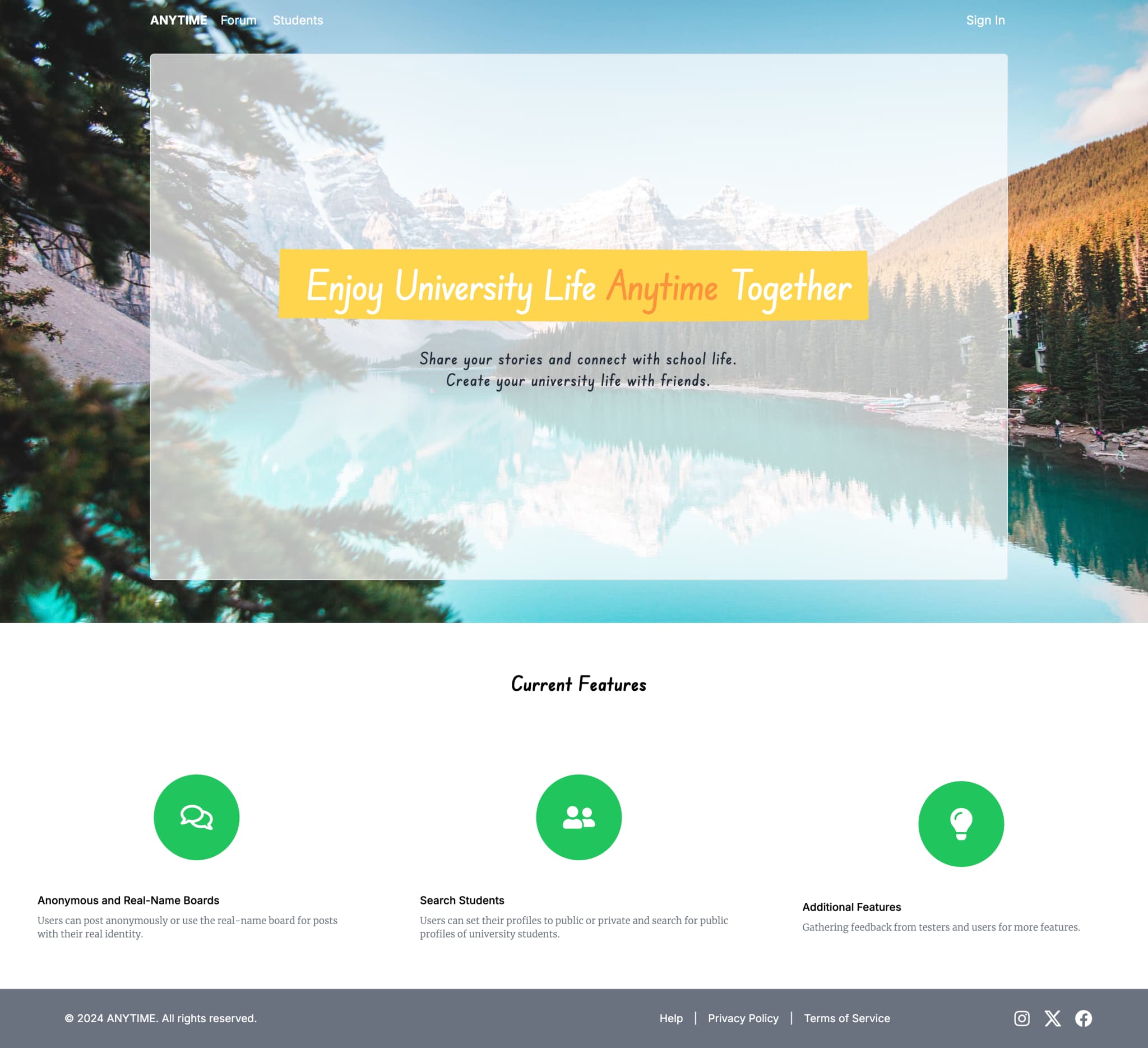 A school social platform for global Canadian universities where students can connect by discovering each other's majors. They can showcase their faculty and major, and share school news either anonymously or with their real name. Administrators manage users via an integrated table system.